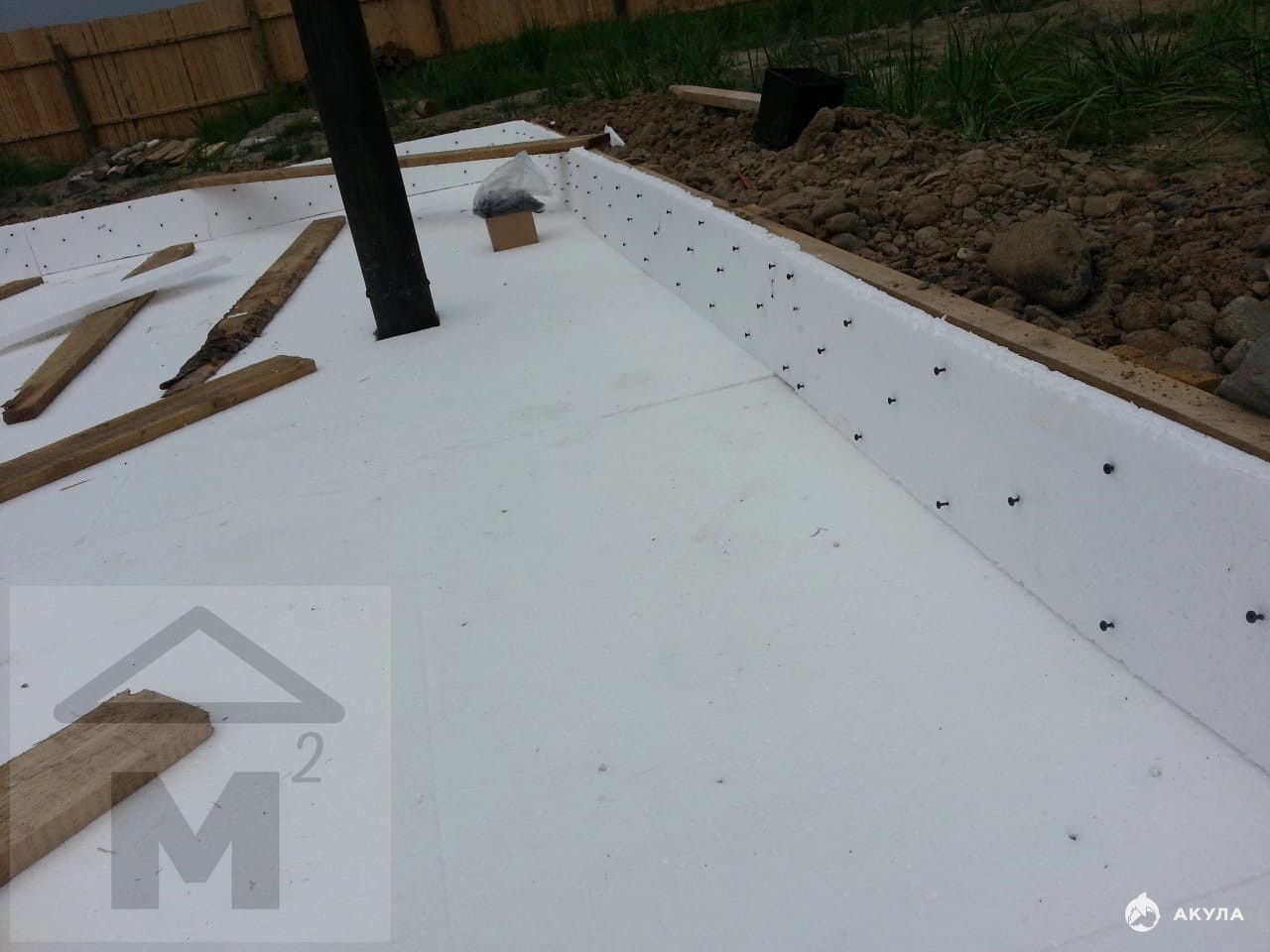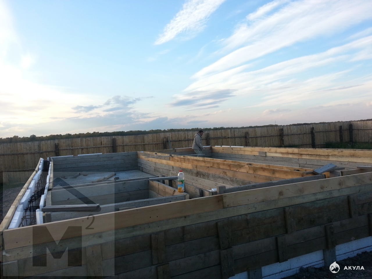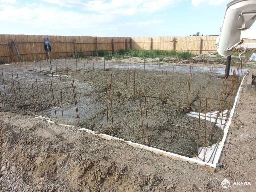 Залита монолитная плита (отсыпана, утеплена, армирующая сетка и залита плита) далее фундамент 1 метр над землей.