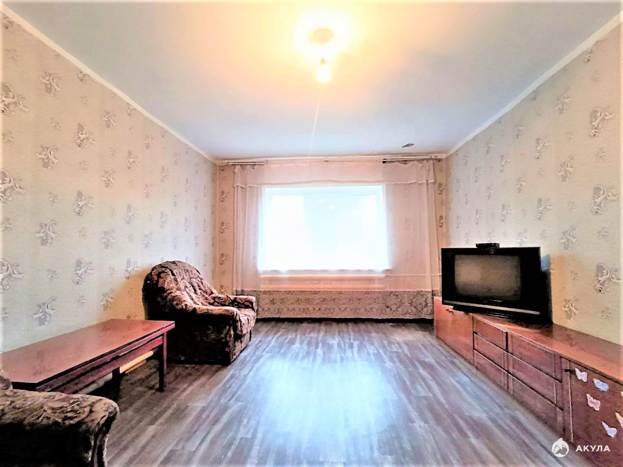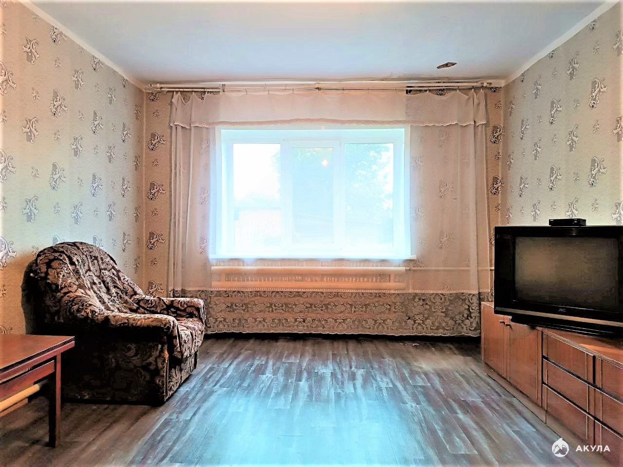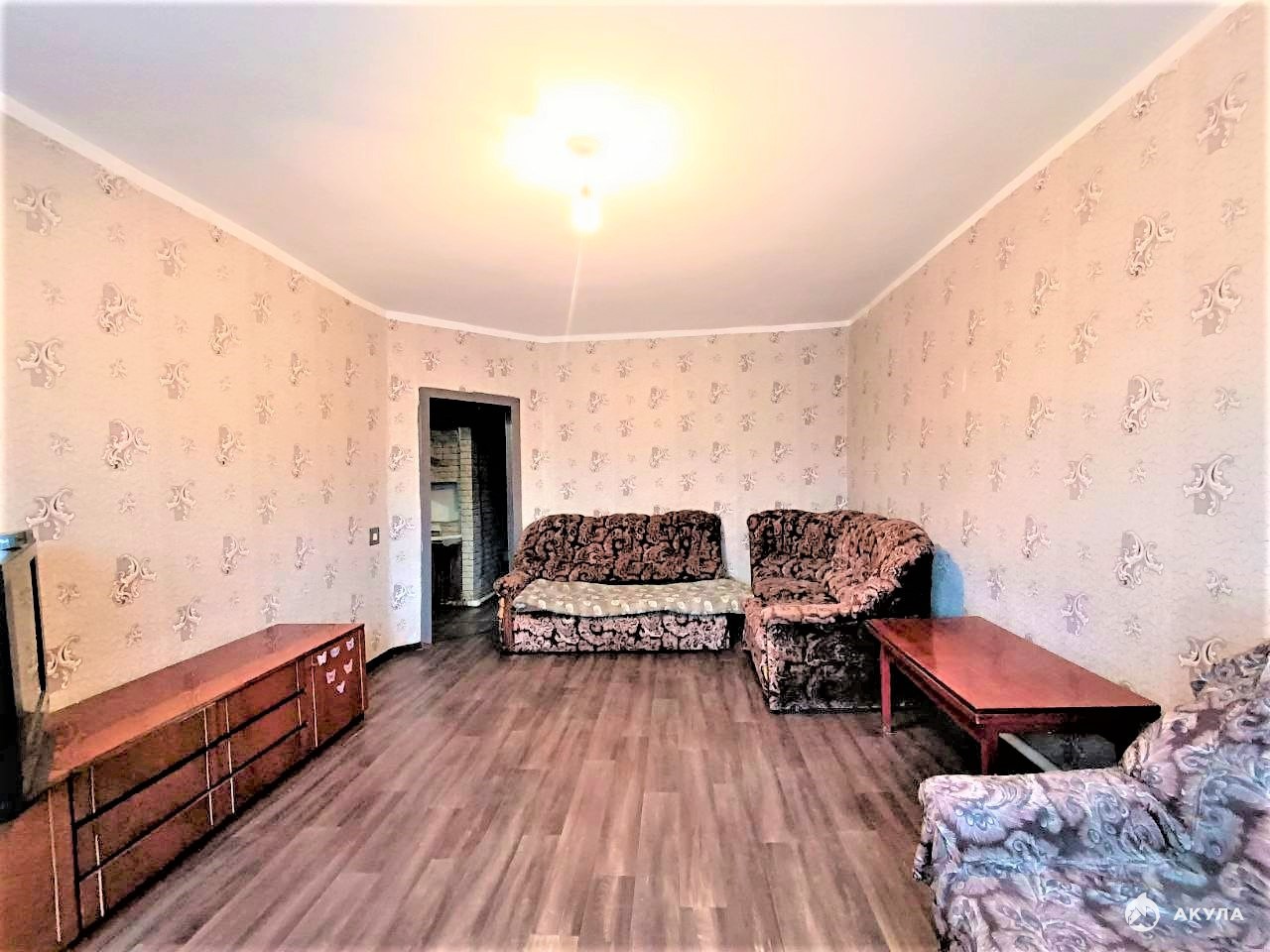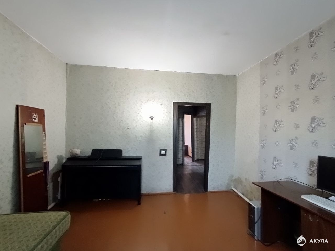 Внутренняя отделка: косметический ремонт, стены оклеены обоями, потолки окрашены, на полу линолеум, окна пластиковые.