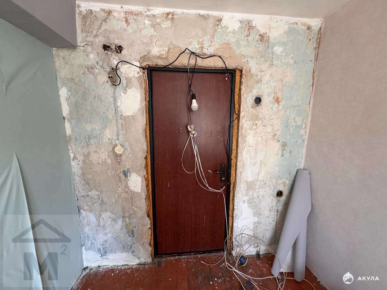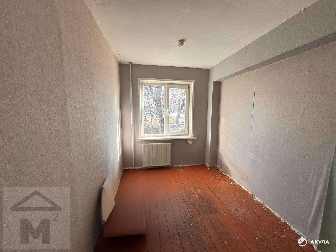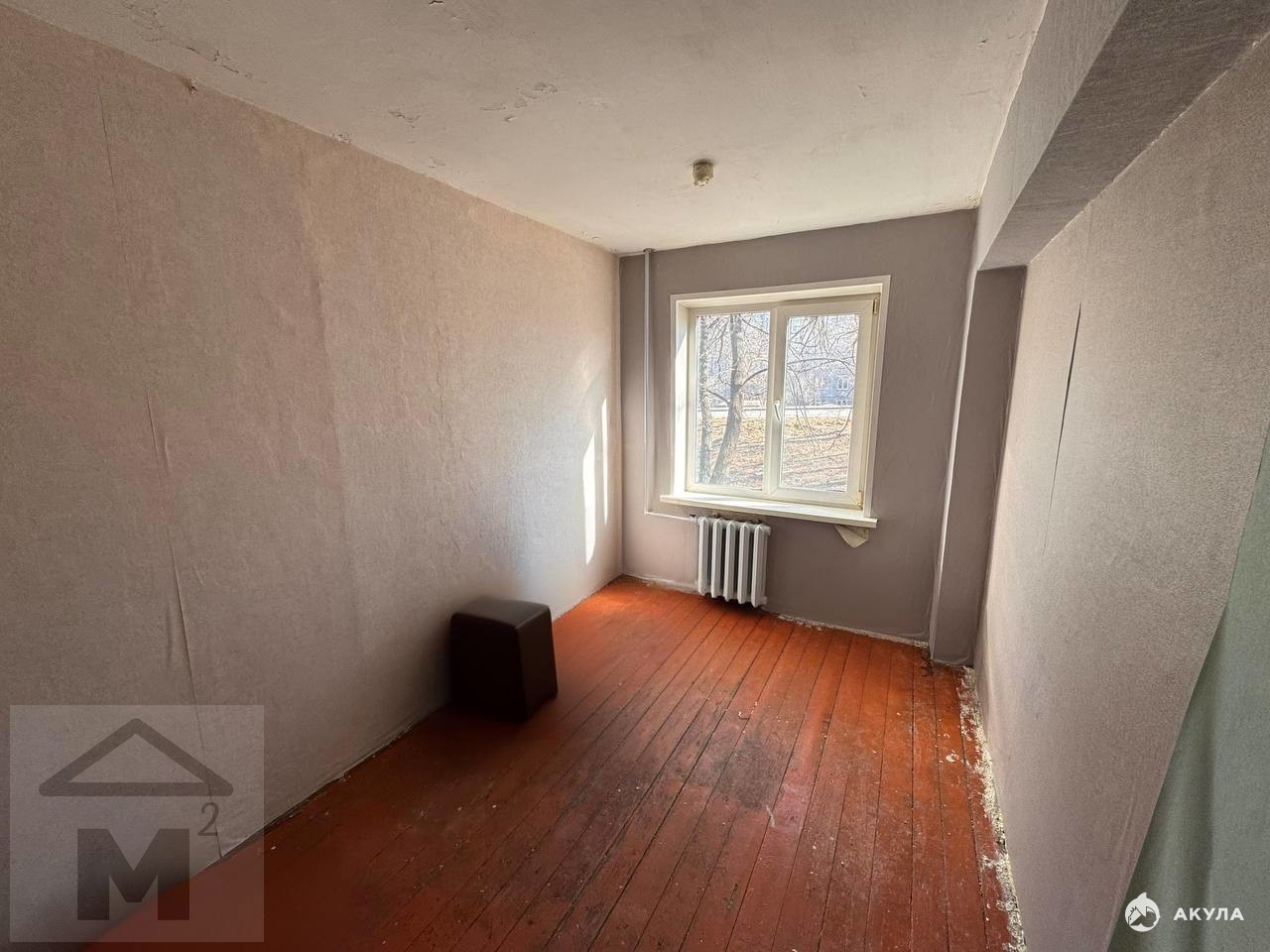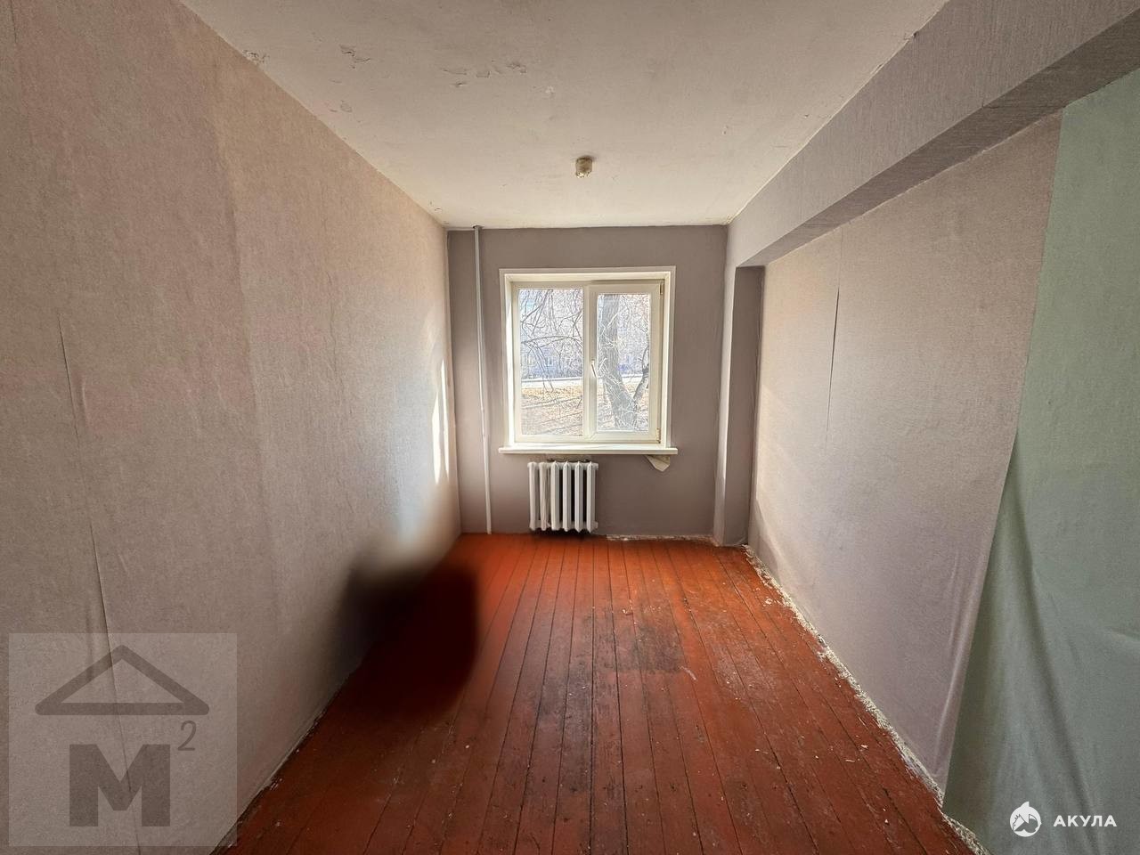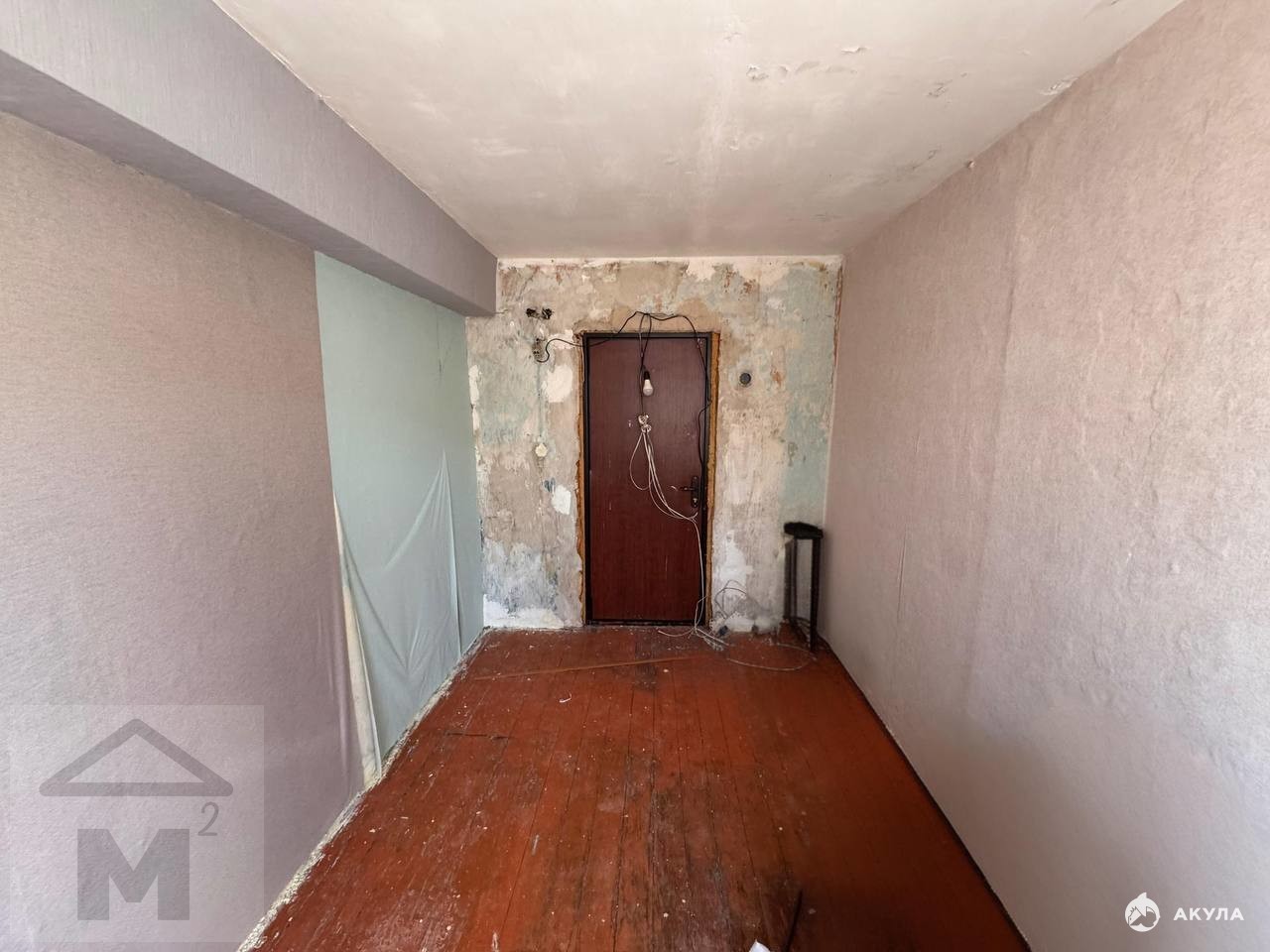 Комната требует ремонта , частично обои поклеины.