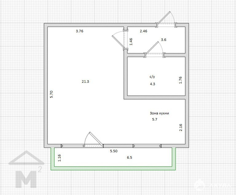 - 5.70 м²