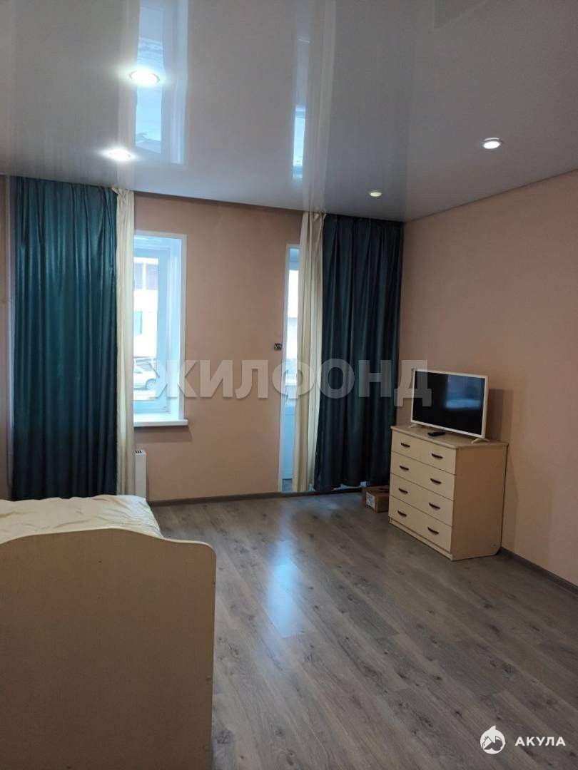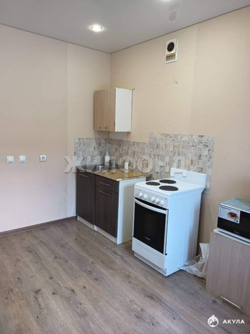 В квартире большая комната, а также большая кухня, совмещенный санузел и лоджия.