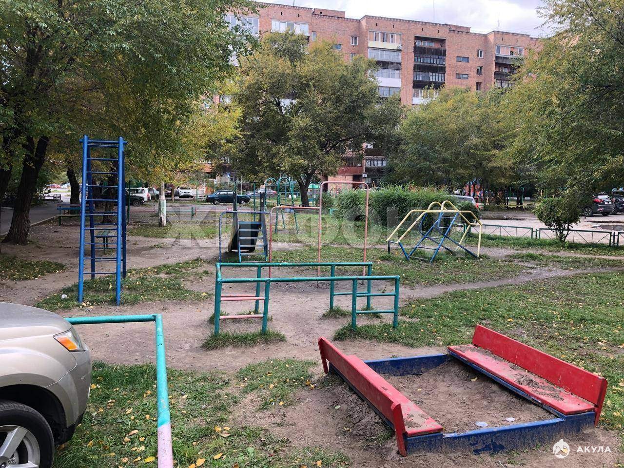 Уютный двор с детской и спортивной площадкой. Есть парковочные места для машин.