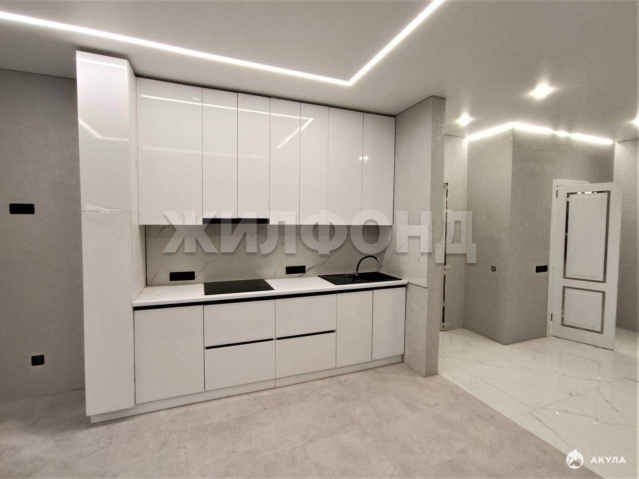 В подарок новому собственнику остаётся стильный кухонный гарнитур.