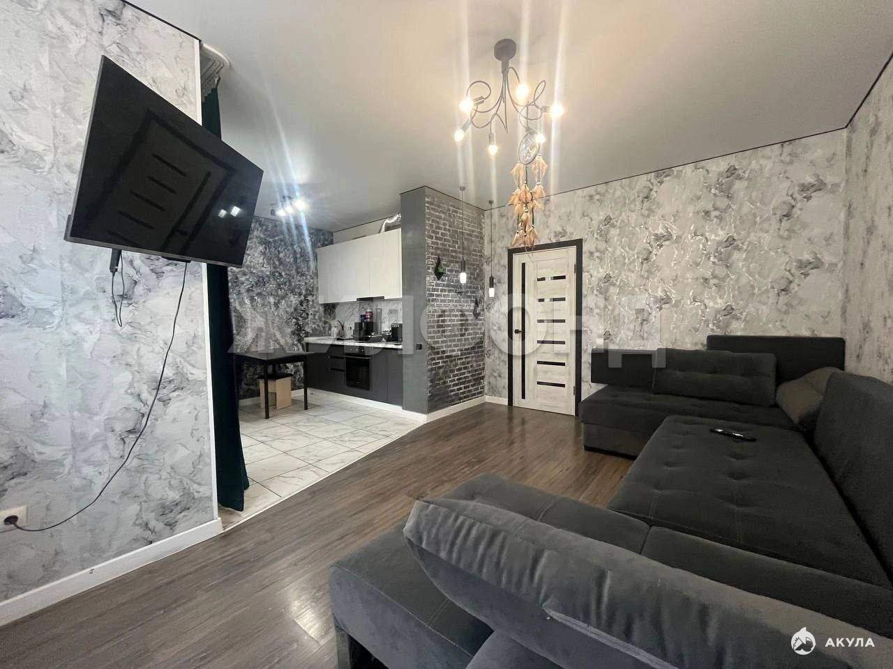 Планировка очень удобная, комната просторная и светлая , кухня совмещена с залом, гардеробная комната, санузел совмещен ( кафель) . Остекленный балкон.
