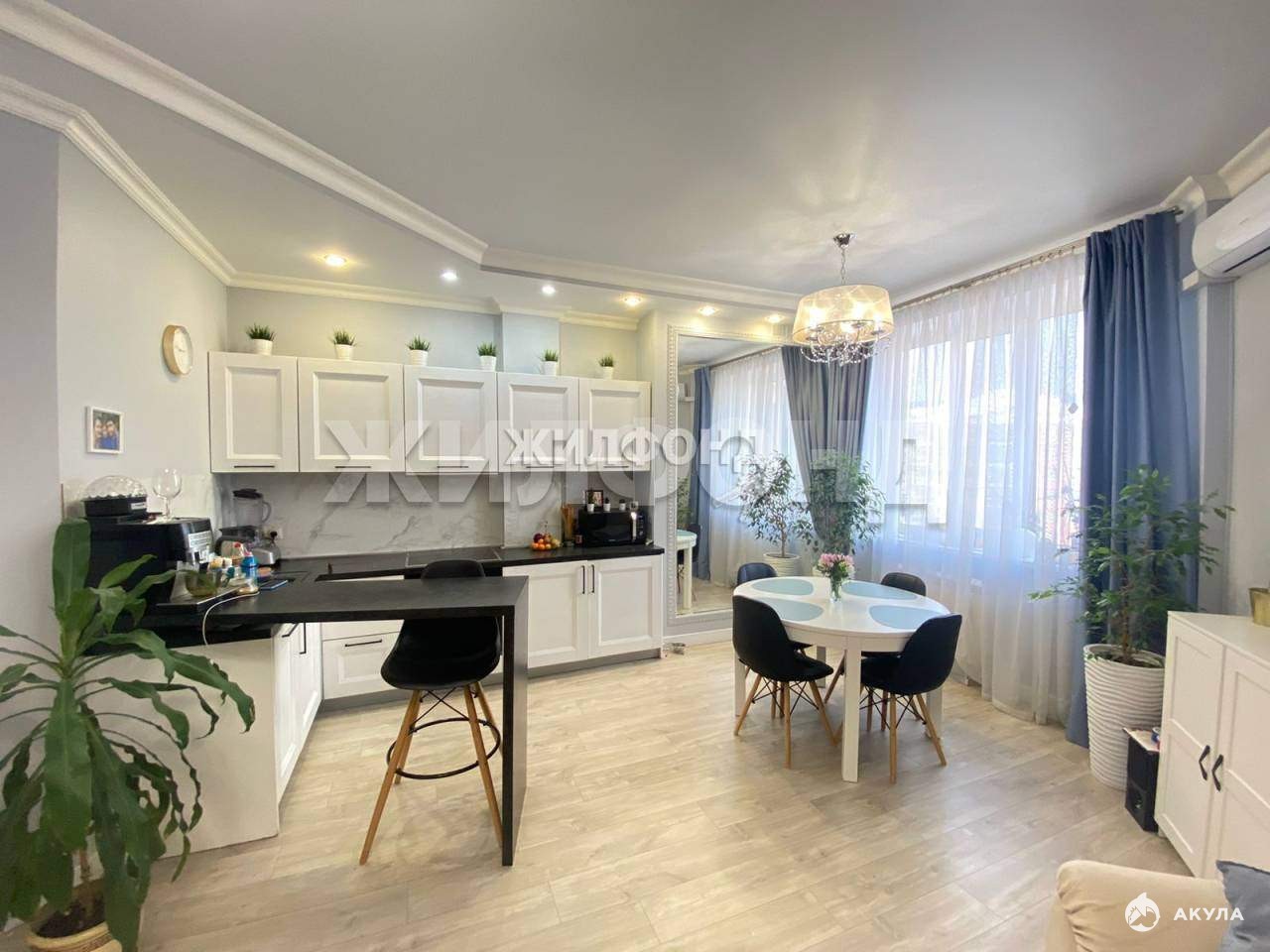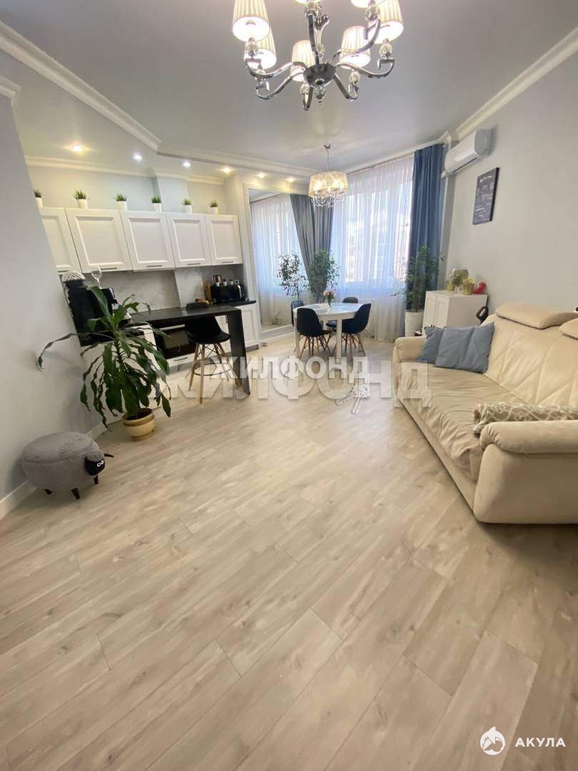 Кухня совмещена с гостиной, кухонный гарнитур Италия со встроенным холодильником, духовым шкафом, варочной поверхностью и посудомоечной машиной (остаются новым владельцам) .
