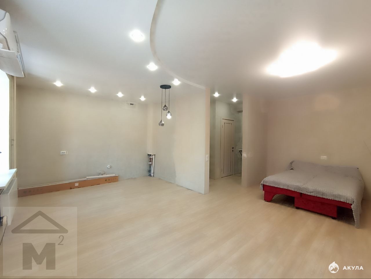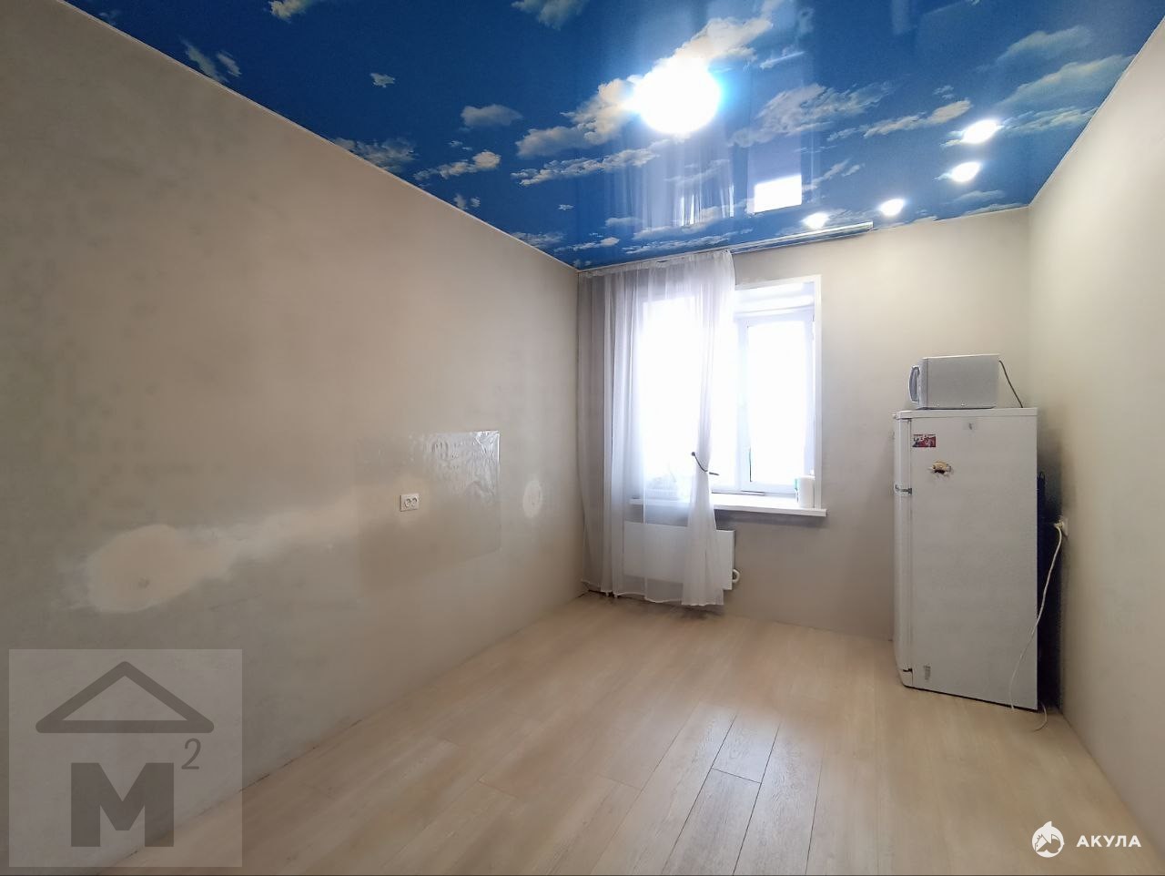 В квартире выполнены ремонтные работы: натянут потолок, на полу ламинат, ванная комната и туалет вымощены кафельной плиткой, установлены межкомнатные двери, стены выровнены и подготовлены к поклейке обоев.