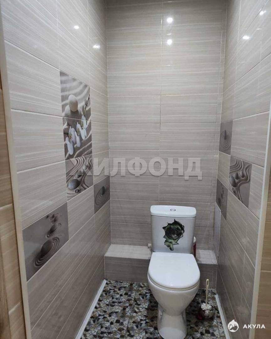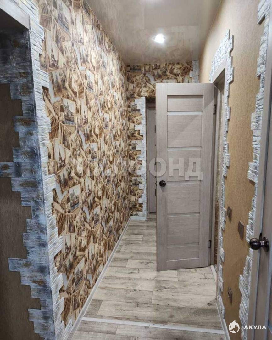 На полу в комнатах ламинат, на кухне и в коридоре линолеум, на стенах флизелиновые обои, потолок выровнен, в одной комнате и коридоре натяжной глянцевый с точечными зонами подсветки.