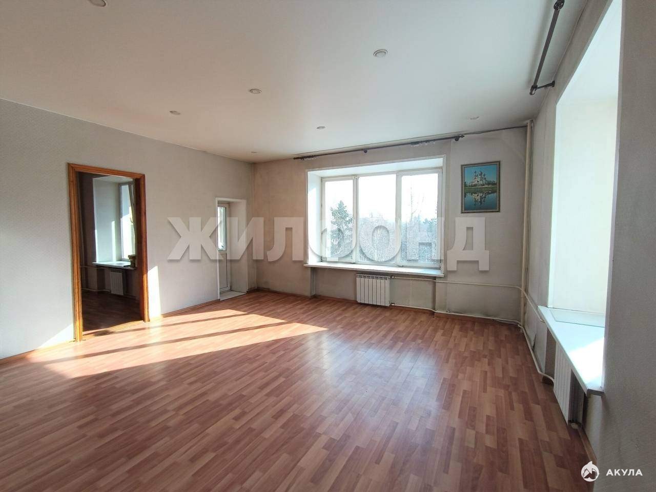 Огромные окна выходят на 3 стороны.