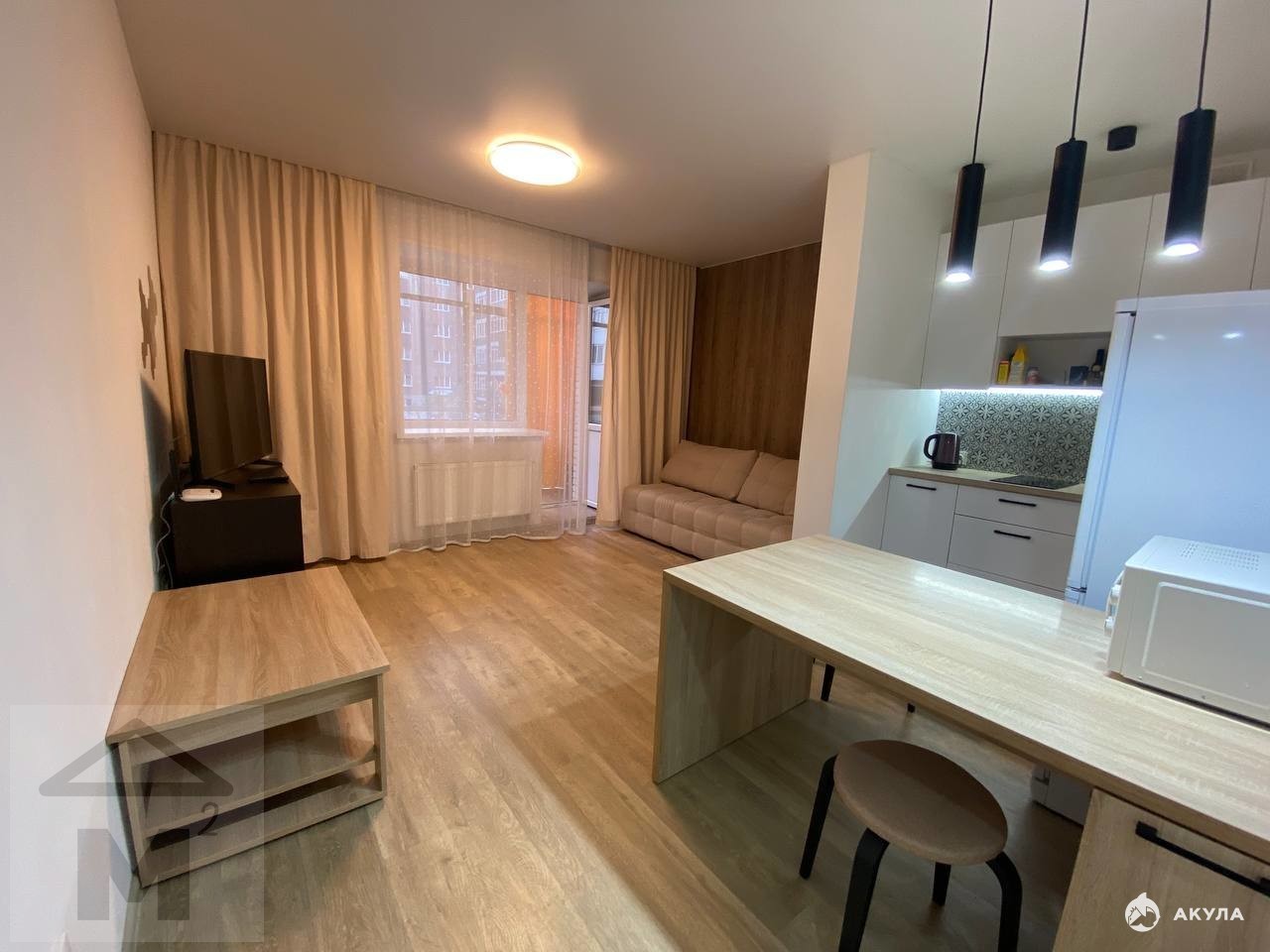 Сдается стильная студия с дизайнерским ремонтом на первом этаже кирпичного дома. В квартире предусмотрено два спальных места, что идеально подходит для семейного проживания. Курение запрещено, а вот проживание с детьми разрешено. Животные не допускаются. Внутри вас ждет современная кухня с необходимой бытовой техникой, включая холодильник и микроволновую печь. Просторная гостиная зона оборудована шкафами и телевизором с кабельным/цифровым ТВ. Из кухни выход на застекленный балкон, где можно наслаждаться свежим воздухом. Санузел совмещенный, выполнен в светлых тонах и оснащен стиральной машиной. Дом расположен в районе с развитой инфраструктурой, рядом есть парковка, закрытая территория.